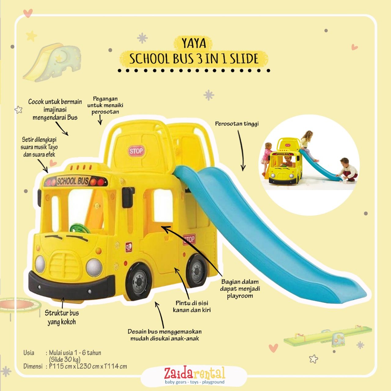 - Sewa Yaya School Bus 3in1 Slide di Zaida Rental.