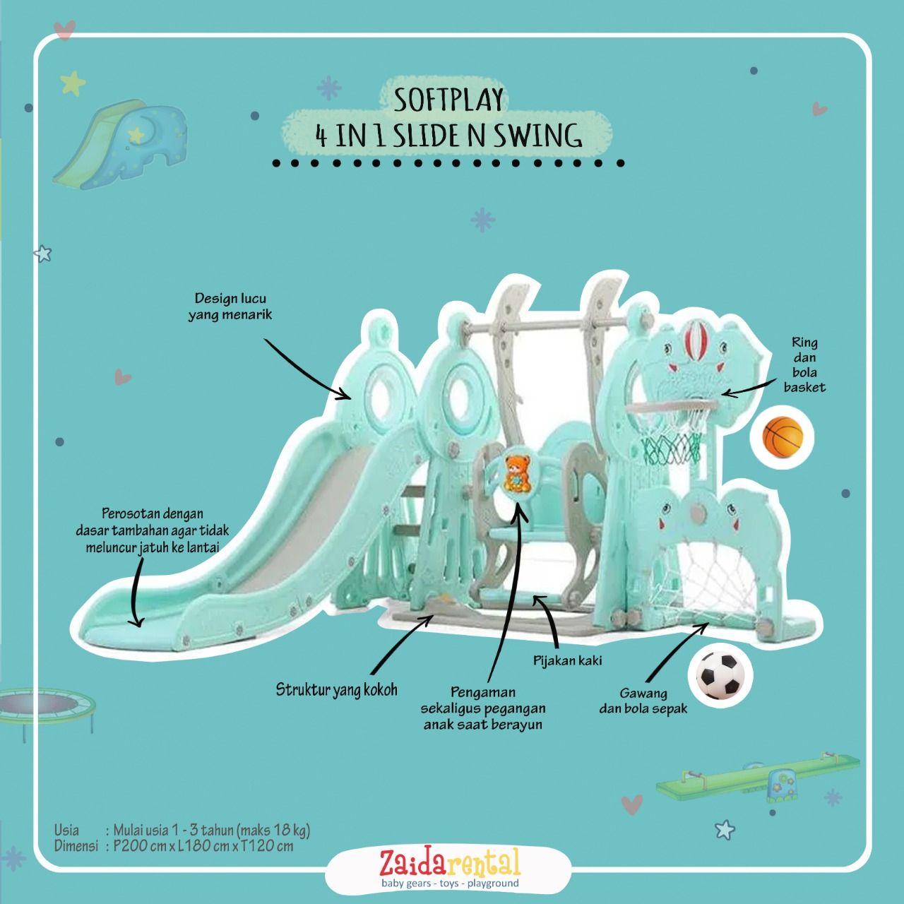 SOFTPLAY 4 IN 1 SLIDE. SWING. BASKET & SOCCER