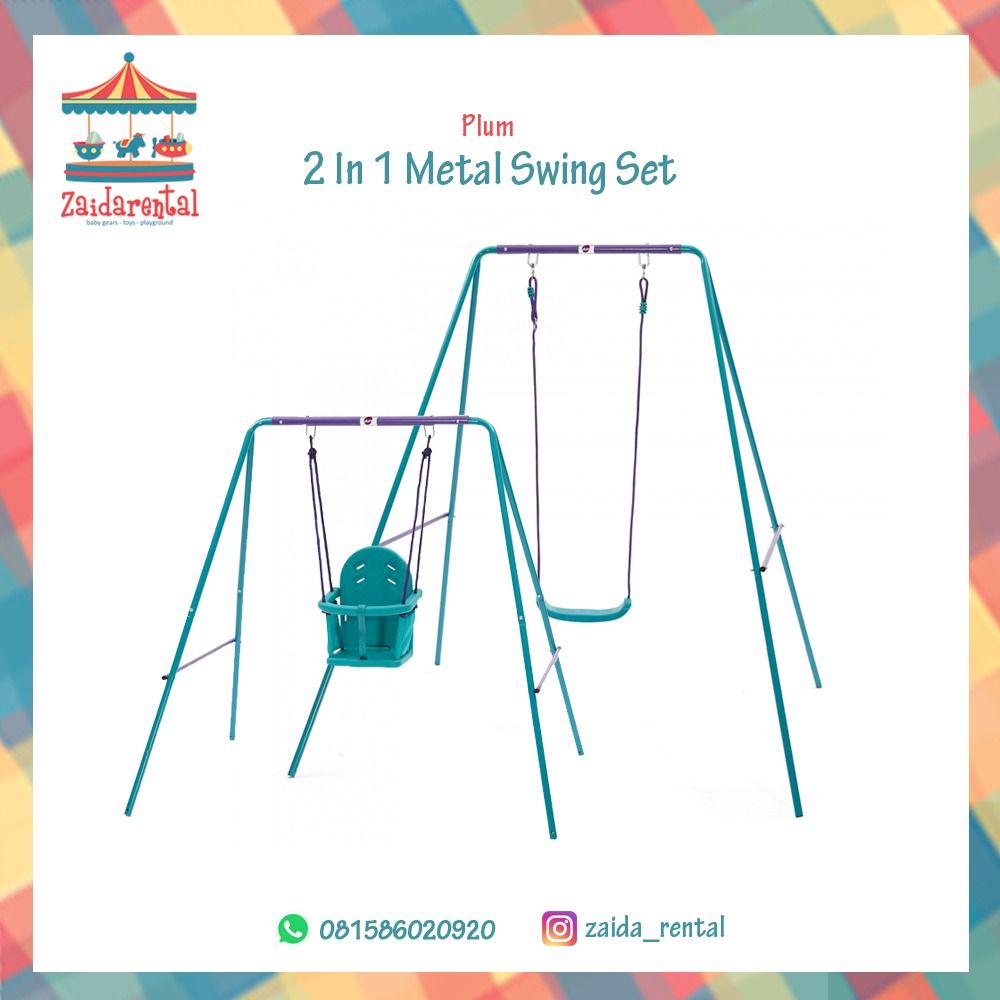 Set Swing 2-in-1 Plum Metal tumbuh bersama anak Anda selama bertahun-tahun bersenang-senang di luar ruangan. Bingkai ayunan mudah memanjang dari tinggi bayi ke tinggi penuh dan mencakup dua kursi ayunan yang cocok untuk bayi dan anak-anak. Terbuat dari powder coated steel, ayunan dirancang untuk kekuatan dan daya tahan. Ini cocok untuk anak kecil yang berusia 12 bulan ke atas.