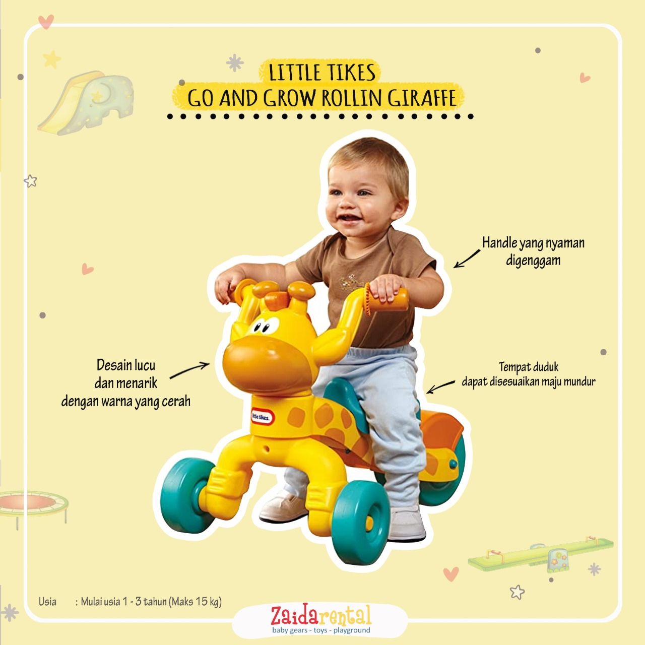 Sewa mainan sepeda anak tricycle Little Tikes Go and Grow Lil Rollin Girafferide on little tikes di zaida rental