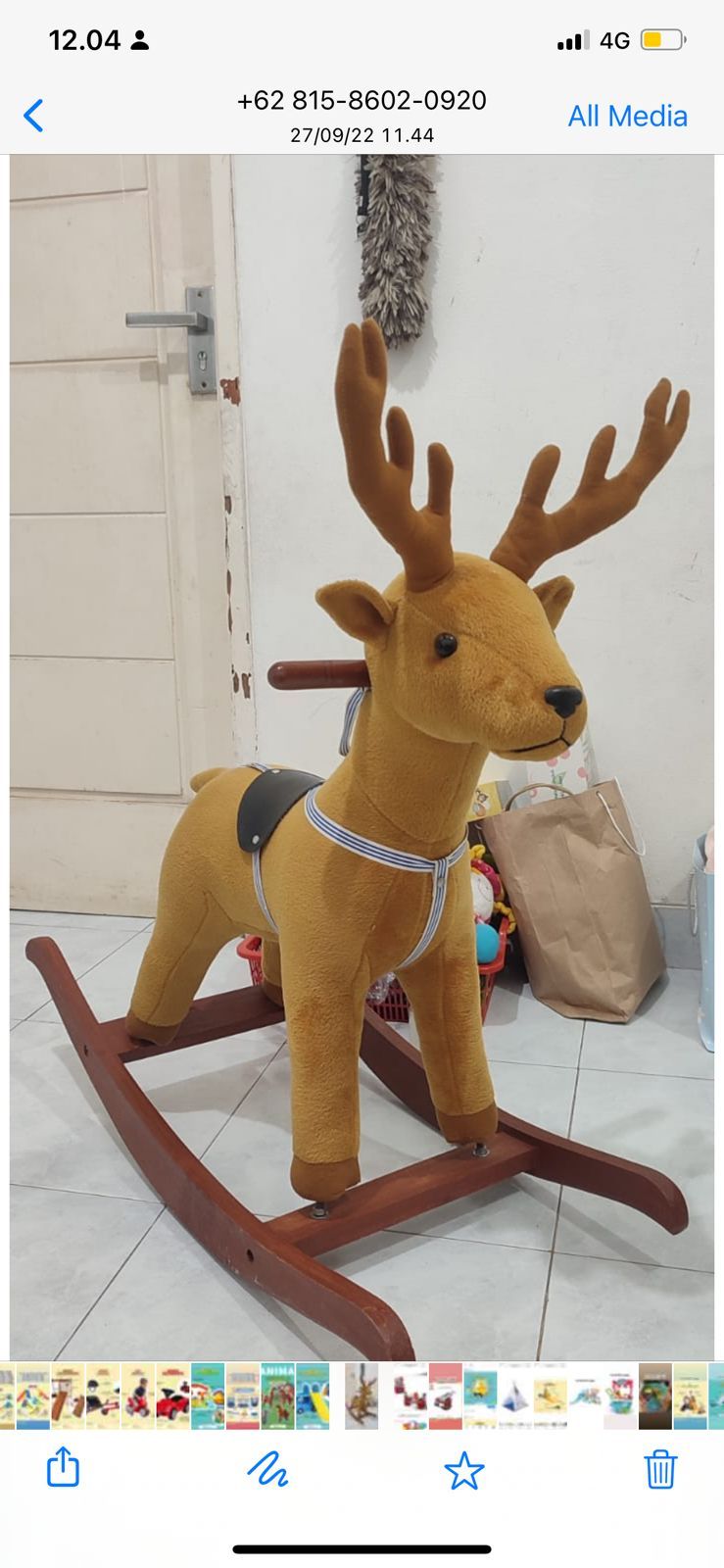 Rocking horse dengan karakter lucu dan menggemaskan menyerupai wujud aslinya.