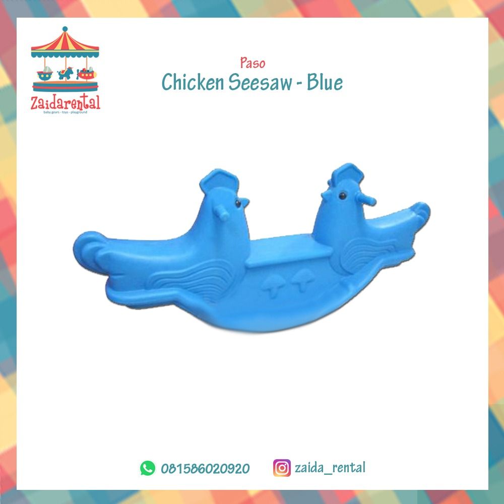 Paso Chicken Seesaw ini merupakan mainan outdoor yang dapat dimainkan 2 orang. Memiliki sistem kerja menyerupai jungkat-jungkit, namun glider bergerak searah dengan arah tubuh si kecil berayun, entah ke belakang atau ke depan. Terbuat dari material plastik berkualitas serta tidak memiliki sudut tajam sehingga aman untuk anak. BPA FREE dan sudah ada SNI.