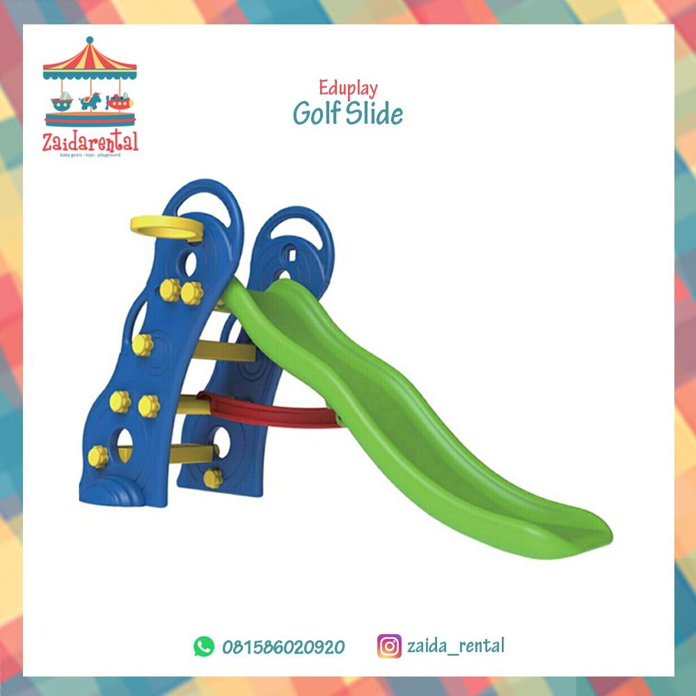 Latih sensor motorik dan koordinasi saraf anak dengan menghadirkan mainan edukasi, salah satunya set perosotan Golf ini. Mainan ini mudah dipasang serta tidak memiliki bagian yang tajam, sehingga sangat tepat dijadikan teman bermain si kecil. Si kecil dapat bermain perosotan dan basket mini dengan set mainan ini. Terbuat dari material plastik berkualitas sehingga kuat dan awet